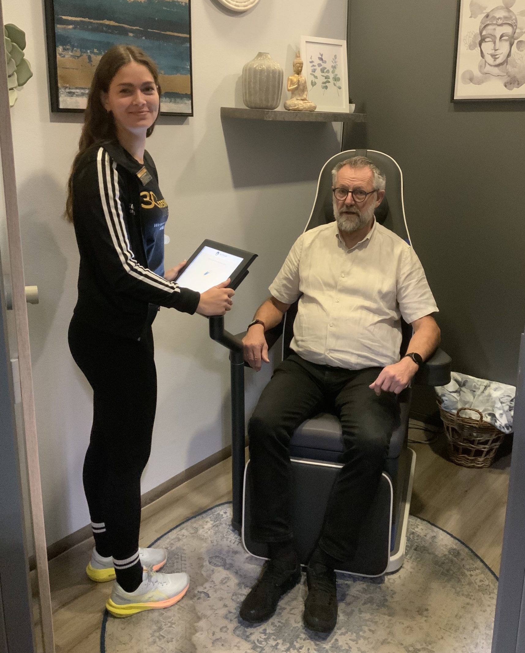 Wolfgang war bereits Mitglied bei Gesund und Fit, als er sich am 13. März beim Basketball spielen schwer verletzte: Achillessehnenriss und Muskelriss im linken Bein. Eine Situation, die für viele erstmal eine längere Trainingspause bedeutet hätte. Doch statt Stillstand ging es bei Wolfgang mit einem individuell angepassten Trainingsplan weiter: Bereits am nächsten Tag startete er mit einem sicheren, gezielten Training bei uns – trotz Gips und ohne Belastung des verletzten Beins. Ab dem 30. April durfte das linke Bein wieder zu 50% belastet werden, auch darauf wurde das Training erneut abgestimmt. Der Fokus lag weiterhin auf dem Erhalt der Muskulatur, gezieltem Kraftaufbau und einer Stabilitätsverbesserung. Am 7. Mai folgte der nächste Meilenstein: die erste Ausdauereinheit und eine Erfolgsmessung. Das Ergebnis war hervorragend. Durch das frühe bedarfsorientiere Training wurde ein sichtbarer Muskelverlust gänzlich verhindert. Mit dem richtigen Trainingskonzept und individueller Betreuung ist auch in schwierigen Phasen viel möglich. Wir sind stolz darauf, Teil dieses Weges zu sein und gehen ihn auch weiterhin gemeinsam mit Wolfgang.